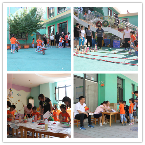 活动开始前园长骆杨为孩子们送上了节日的祝福,活动根据本次主题设置幼儿集体操展示和游艺活动两项内容。在展示活动中,韩幼教师的健美操、大班幼儿的武术操、中班的“快乐的一天开始了” 、小班的“宝贝宝贝”等节目赢得了家长们阵阵掌声。游艺活动以亲子游戏为主,家长和孩子共同参与共同完成,共设置了20多个游戏项目,每个游戏场地都设有组织者、安全员及助手。