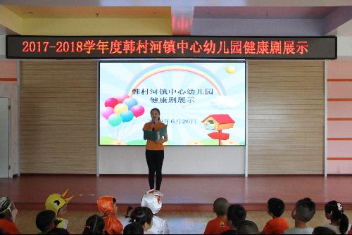 2017-2018学年度韩村河镇中心幼儿园健康剧展示活动于6月26日在音体教室隆重开幕,全园200余名师生观看了演出。